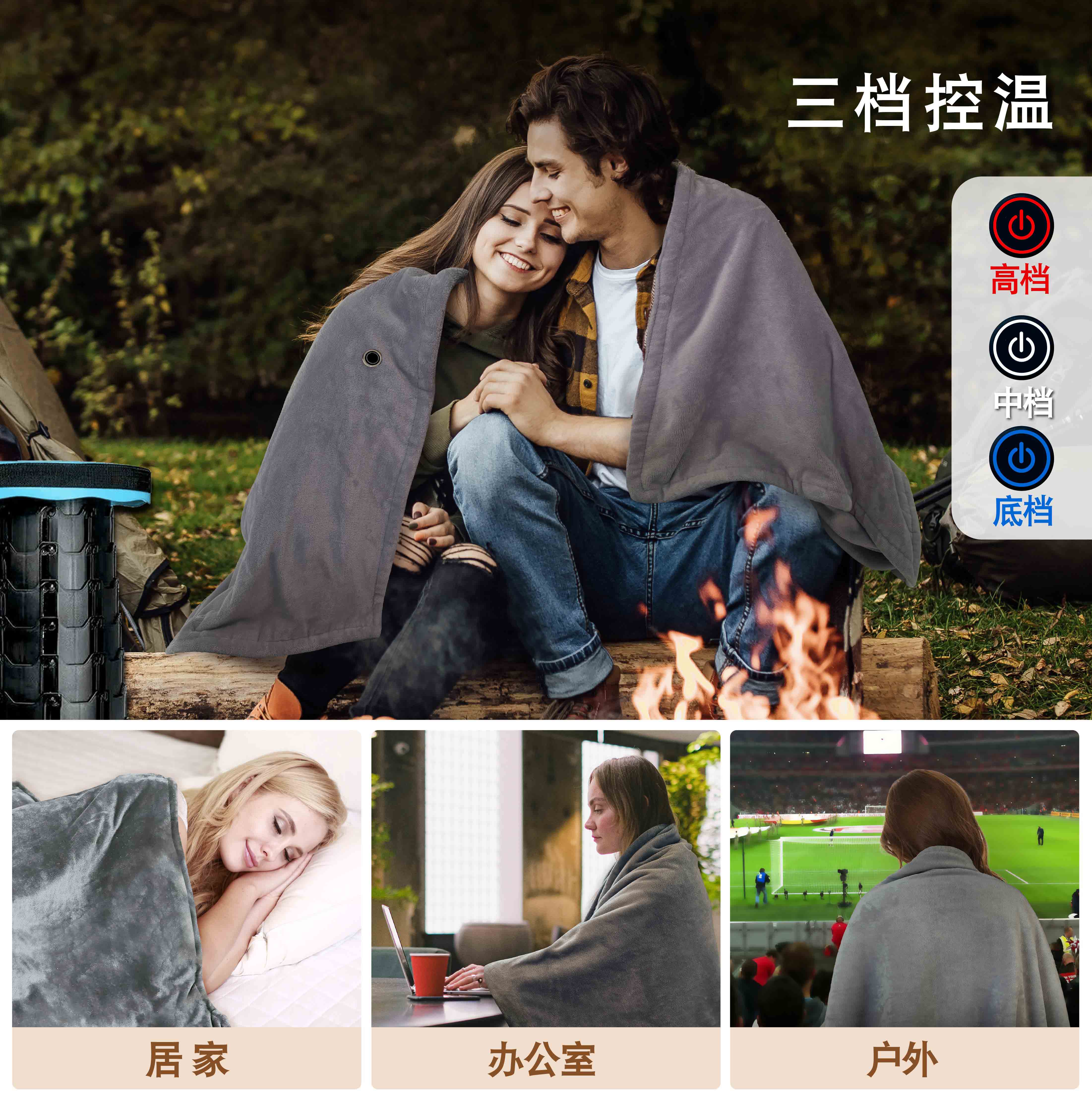 1.10000mAH 电池 2.亲肤面料,不易脱落或起球 3.支持水洗 4. 多种使用场景:办公室\家庭\露营\飞机